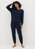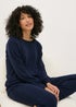 Learn moreThis luxurious navy lounge top combines style and comfort for the perfect everyday look. Crafted from a soft knit fabric, it feels gentle against the skin while keeping you cosy all day long. Designed with your comfort in mind, this top features a classic round neckline and long sleeves for a relaxed yet elegant fit.