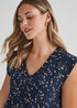Learn moreA pretty twist on the classic T-shirt, say hello to this lovely number in navy. Detailed with a timeless mark making print and cut with an uber flattering V-neck, flattering short sleeves complete the design. Team with shorts, jeans or trousers, depending on the season and occasion. Model Height: 5ft 9.