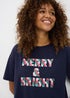 Bring festive cheer to your bedtime with our Navy Merry & Bright T-Shirt Nightie. Crafted from soft, breathable fabric, this relaxed-fit nightie keeps you cosy and comfortable through the night while adding a touch of holiday spirit.