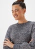 Learn moreAdd a fun touch to your winter wardrobe with this elegant jumper! Styled in a navy tone, it features cosy ribbed hems, snug sleeves and a classic crewneck for a familiar fit. Crafted with ivory and multi coloured nep detailing, simply pair with leggings or jeans to complete the look. Model Height: 5ft 9 1/2.