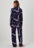 Introducing this traditional pyjama set, the epitome of style and comfort. It offers a unique patchwork design that stands out with charm, while the slinky fabric provides a luxurious feel while ensuring a perfect night's rest. With a navy colour that exudes elegance, it's perfect for both lounging and sleeping. The shirt is finished with practical button fastenings and a smart collar, while the bottoms are rounded off with stretch to the waistband and a relaxed fit through the legs. Model Height: 5ft 9.