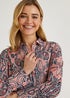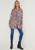 Keep it classy with this stunning aztec print shirt! Designed with a cream base, the shirt features a chic navy and pink pattern, a collared neckline and a button down front. Constructed from a lightweight and breathable material, it's finished with a longline cut for added style points. Model Height: 5ft 9.