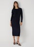 The Navy Plisse Column Dress is a sophisticated and versatile addition to any wardrobe. This elegant piece features a textured plisse fabric that adds depth and interest to the classic column silhouette. The dress boasts a modest round neckline and long sleeves, making it suitable for various occasions, from office wear to evening events. Its midi length is both contemporary and timeless, ensuring this dress will be a go-to item for seasons to come. The deep navy hue lends itself to easy accessorizing, whether paired with bold statement jewellery or kept simple with understated pieces. This dress promises comfort without compromising on style, perfect for the modern woman who appreciates elegance and ease in her clothing choices.