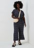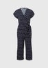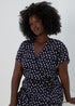 Learn moreA chic and comfortable outfit that can take you from day to night! This stunning piece features a wrap-style top with a V-neckline, short sleeves, and a self-tie belt that cinches the waist and creates a flattering silhouette. The navy blue fabric is adorned with white polka dots, adding a touch of charm and sophistication. The wide-leg pants are made of plisse material, which is soft, stretchy, and wrinkle-resistant, making it perfect for travel or busy days. Whether you pair it with flats, heels, or sneakers, this jumpsuit will make you feel fabulous and confident in any occasion.