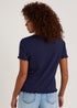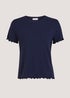 Learn moreSoft and lightweight, this gorgeous T-shirt is perfect for outfit building when the weather turns that bit nicer. Crafted from stretchy ribbed fabric and featuring a classic navy base colour, it's finished with cool jagged trims to the short sleeves and hem. Finish your look with stylish pairs of shorts and sandals. Model Height: 5ft 9.