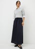 Effortlessly elegant, this navy satin maxi skirt drapes beautifully with a floaty silhouette that moves with every step. The elasticated waistband and working drawcord provide a comfortable, adjustable fit, making it perfect for both relaxed days and dressier occasions. Its smooth satin finish adds a subtle sheen for a sophisticated touch.