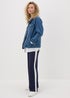 Learn moreStep out in style this season with our Navy Side Stripe Jersey Wide Leg Trousers. Crafted from a premium fabric, these trousers are designed to flatter your figure and keep you comfortable all day long. Pair with a crisp white shirt and blazer for a polished casual style.