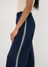 Our Navy Side Stripe Wide Leg Trousers are the perfect addition to any woman's wardrobe. Crafted from a soft and durable fabric blend, these trousers offer both comfort and style. The classic navy colour is versatile and can be easily paired with a variety of tops and accessories. The wide leg cut with a side stripe provides a flattering and elongating silhouette. For a casual look, pair the trousers with a T-shirt and trainers or for a more formal occasion, team them with a blouse and heels.