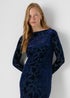 Navy Slash Neck Devore Midi Dress