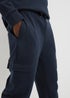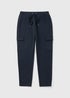 These navy smart joggers bring together a polished look and everyday comfort, made from a premium cotton blend that feels smooth and structured. An elasticated waistband with drawstring adjustment keeps the fit easy, while side pockets and cargo-style leg pockets add practical detailing without losing the clean, modern shape. The tapered leg gives them a refined finish that works well for relaxed days or casual outings. Pair with the matching smart co-ord top to create a cohesive, elevated set.