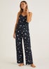 Dream of the beautiful night's sky with this enchanting pyjama set, made with soft-touch navy fabric for maximum evening comfort. Encouraging a great night's sleep, it's covered with stunning stars. While the cami top is trimmed with lace and includes statement straps, a straight leg cut and elasticated waistband complete the matching bottoms. Leg Length: 75cm.