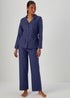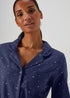 Learn moreAdd classic prints to your sleepwear collection with this charming pyjama set. In navy, it comes with a long sleeve top and matching bottoms. The top features a smart collar, button up front and a single chest pocket, whilst the bottoms are finished with an elasticated waistband for added comfort and a relaxed fit through the legs.
