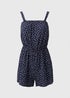 Learn morePerfect for sunny days, this navy playsuit features a classic spot print and a comfy elasticated waist for a flattering fit. Lightweight and easy to wear, it’s a great choice for casual days out or relaxed evenings.