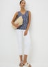 Keep it classic and playful with this Navy Spot Print V Neck Vest Top. Featuring an all-over white spot print on a rich navy base, this sleeveless top brings a timeless charm to your warm-weather wardrobe. Designed with a flattering V neckline and a lightweight, breathable fabric, it’s perfect for sunny days, layering under cardigans, or dressing up with tailored trousers or skirts.