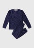 Classic, comfy, and effortlessly cute — the Navy Spot Pyjama Set is a bedtime essential you'll love slipping into. Crafted from soft, breathable fabric, this two-piece set features a cosy crew neck top and relaxed-fit bottoms, both adorned with an all-over white spot print. The rich navy base gives it a timeless feel, while the playful polka dots add a fun, feminine twist.