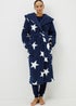 Wrap yourself in warmth and comfort with the Navy Star Pattern Fleece Dressing Gown. Made from ultra-soft fleece, this cosy layer is perfect for chilly mornings, relaxing evenings, or lazy weekends. The deep navy hue is complemented by an all-over star pattern, adding a touch of fun to your loungewear collection.