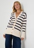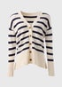 Learn moreThis relaxed, easy-to-wear navy stripe knitted cardigan is made from a soft and comfy knitted fabric fabric that feels wonderful against your skin. It features a classic boyfriend cut with a relaxed silhouette, and a v neck style going into a button down front. The navy and cream stripes add a touch of sophisticated elegance to this versatile piece.With its timeless style and versatile design, it can be dressed up or down to suit any occasion. Pair it with your favourite pair of jeans and a crisp white tee for a casual, everyday look, or layer it over a dress for a more polished, put-together ensemble.