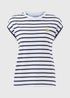 Bright and playful, this navy striped T-shirt is crafted from 100% cotton for soft, all-day comfort. Featuring cap sleeves and a classic crew neckline, the cheerful lemon chest motif and nautical stripes evoke carefree Capri vibes, perfect for sunny days.