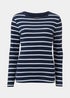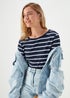 Learn moreFan of your versatile basics? Styled with a navy base, it features a timeless stripe print, snug long sleeves and a crewneck for classic comfort. Crafted with a soft material, it's perfect for work and weekend. Model Height: 5ft 9.