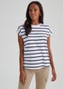 There's no such thing as having too many T-shirts, so why not try ours? Constructed from soft cotton, our white longline essential tee with navy stripes is cut with dropped short sleeves and a round neck. Pair with all your favourite leggings and jeans for simple style that wins every time. Model Height: 5ft 10.