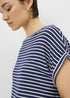 Add some nautical charm to your wardrobe with this chic longline T-shirt. Styled with a timeless navy and white stripe design, this T-shirt offer a classic, clean, minimalist look. The longline fit offers extra coverage and a relaxed silhouette, making it perfect for pairing with leggings, jeans, or shorts. Crafted from sumptuously soft and stretchy viscose fabric and cut with cap sleeves, this versatile tee is ideal for comfy casual wear, layering, or laid-back styling.