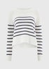 Stay cosy in style with this navy stripe jumper, featuring statement chunky rib hems that add texture and interest to a classic design. Perfect for chilly transitional months, its soft knit provides warmth while the subtle nautical stripes bring a timeless, maritime-inspired touch. Split sides and drop shoulders complete the design.