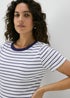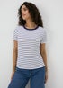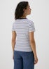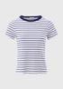 Learn moreOur Navy Stripe Ribbed T-Shirt is a wardrobe staple that's perfect for any casual occasion. Made from a soft and lightweight cotton-elastane blend, this tee features a classic striped pattern in navy and cream that's sure to turn heads. Featuring a crew neckline, short sleeves, in a ribbed fabric. Pair it with your favourite jeans and trainers for a laid-back weekend look or tuck it into a high-waisted skirt and add sandals for a chic summer outfit.