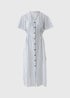 Learn moreSlip into sophisticated elegance with our Navy Stripe Shirred Midi Dress. This dress is a must-have addition to your wardrobe, crafted from a soft and durable fabric for utmost comfort and longevity.
