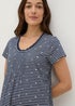 Learn moreFeel comfortable as you drift off to dreamland in our navy stripe and star nightie. This nightie is as comfortable as it is beautiful and will make you feel like luxury every night. Featuring the perfect combination of elegance and comfort, crafted from 100% cotton that feels soft against your skin. With its short sleeves and relaxed fit this nightie is perfect for a peaceful night sleep.