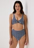 Navy Stripe Textured High Waisted Brazilian Bottoms
