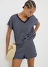 Keep your look effortlessly cool with this Navy Stripe Textured V Neck Crop Top. Featuring a flattering V neckline and subtle stripe texture, this cropped top is perfect for warm-weather layering or styling solo with high-waisted bottoms. Made from soft, stretch fabric for a comfortable fit, it pairs perfectly with the matching co-ord shorts or your favourite jeans, skirts, or joggers. Whether you're lounging or heading out, it’s a laid-back essential with a touch of style.