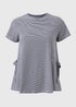 A fresh twist on a classic essential, the navy stripe tie side t-shirt is crafted from 100% breathable cotton for all-day comfort. Designed with clean short sleeves and a flattering tie-side detail, it adds subtle shape and effortless style to your everyday look. Wear it loose for a relaxed feel or cinch the tie to create a more defined silhouette—perfect with jeans, skirts, or tailored trousers.