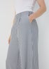 Learn moreTake your style up a notch with our Navy Stripe Wide Trousers. Cut from a high-quality fabric, these trousers boast a flattering wide-leg silhouette and feature a fun stripe pattern that adds a touch of elegance. The pleated front adds a touch of sophistication, while the wide waistband ensures a comfortable and flattering fit. Perfect for both work and casual, these trousers will quickly become a staple in your everyday wardrobe. Dress these trousers up with a crisp blouse and heels for the perfect work outfit or pair them with a casual top and trainers for a relaxed weekend look.