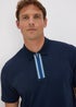 Learn moreIntroducing the Navy Stripe Zip Polo Shirt, a perfect blend of timeless style and modern convenience. Crafted from high-quality, breathable fabric, this polo shirt ensures maximum comfort and durability, making it an essential addition to any wardrobe. The sophisticated navy hue adds a touch of elegance and versatility. The contemporary zip-up collar with stripe detail, offers adjustable styling and easy wear, adding a modern twist to the traditional polo.