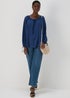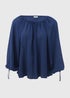 Elevate your style with our elegant Navy Tie Neck Blouse Top. Crafted from a luxurious, lightweight fabric, this top drapes beautifully on the body, offering a flattering silhouette for all body types. The rich navy hue exudes sophistication while the tie neck detail adds a touch of femininity and versatility to your look. Featuring billowing sleeves and intricate perforated patterns, this blouse is perfect for transitioning from day to night effortlessly. Pair it with tailored trousers or a pencil skirt for a polished professional look or dress it down with jeans for casual yet chic weekend wear.