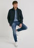 Looking for a practical yet charming jacket? Designed in a versatile navy shade, this dapper jacket features multiple pockets with zip and button fastenings to store your essentials, snug long sleeves and a removable hood for added outfit choices. Constructed from a lightweight material, simply pair with jeans or joggers to complete the look. Model Height: 6ft 2.