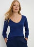 Navy V-Neck Long Sleeved Fitted T-Shirt