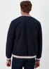 Keep the chill at bay with this charming bomber jacket. Styled in a classic navy tone for easy outfit building, it features a cosy ribbed collar, two front pockets for your essentials and popper fastenings to the front for easy on/off. Crafted with a soft and comfy material, it's finished with trendy colour piping to the hems to make you smile. Model Height: 6ft 2.