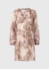 Nude Pink Paisley Tie Neck Mini Shirt Dress