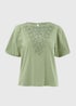 Eternally chic, this olive crochet effect top is a must-have for feminine styling. Featuring intricate crochet detailing and romantic puff short sleeves, it adds texture and charm to any outfit. The soft cream hue keeps it versatile, while the lightweight fabric ensures all-day comfort. Crafted from 100% cotton and cut with a relaxed fit, the design is complete with a crew neckline and a keyhole fastening to the back.