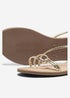 Step into glamour with our Gold Knot Melly Sandal. These sandals boast gold straps and a beige sole, combining comfort with a touch of luxury. The fancy design, highlighted by a prominent gold knot, adds a chic and distinctive flair to your summer style.