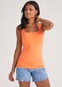 Learn moreKeeping things nice and easy breezy is a doddle with this classic vest top, cut to a short length. In orange for added prettiness, it's created with soft cotton fabric and stretch to take everyday comfort to the max. A wardrobe staple, it's great for seeing you through the warmer seasons or for layering when the temperature drops. Model Height: 5ft 9.