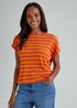Earn your stripes when amping up your summer wardrobe with this vibrant number. Crafted from soft fabric for a dreamy fit and feel, the top features a bold orange and pink stripe design, together with the signature bubble hem. Cap sleeve styling and a simple crew neckline complete the look. Perfect for pairing with your favourite jeans or crisp white linen trousers for added contrast. Model Height: 5ft 10.