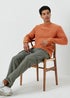 Orange Textured Crew Neck Sweatshirt