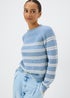 Refresh your wardrobe with the Pale Blue Stripe Ribbed Knit Jumper, a perfect blend of comfort and style. Crafted from soft, breathable knit fabric, this jumper features a ribbed texture for a flattering fit and a touch of visual interest.