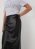 Papaya Black Satin Midi Skirt
