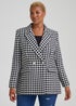 Learn moreAdd a pop of colour to your blazer collection with this stunning addition from Papaya Curve. Designed in a gorgeous black and white print, it features two front pockets and a double-breasted front for extra style points. Constructed with a timeless, comfy collar, simply pair with black trousers and a black top to complete the look. Online exclusive. Model Height: 5ft 10.