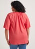 Learn moreAdd a dash of oh la la to your smart casual line-up with this beautiful blouse. Part of the Papaya Curve range, it comes in a charming coral shade and is crafted from breathable textured jersey fabric. Also featuring comfy short sleeves, the feminine V-neck comes complete with a tie detail for a practical finish. Pair the look with jeans and boots.