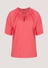Add a dash of oh la la to your smart casual line-up with this beautiful blouse. Part of the Papaya Curve range, it comes in a charming coral shade and is crafted from breathable textured jersey fabric. Also featuring comfy short sleeves, the feminine V-neck comes complete with a tie detail for a practical finish. Pair the look with jeans and boots.