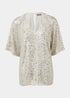 Put luxury at the forefront fur your next party with this stunning box top. From our Papaya Curve range, it's covered with gorgeous gold sequins and comes with floaty sleeves for elegance, together with a V-neck for lovely femininity. The back neck fastening, meanwhile, provides easy on/off. Team with trousers and block heels.